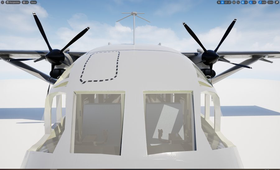 Developed from the Short SC.7 Skyvan utility transport, the C-23 Sherpa has an exterior length of 17.69 meters, height of 4.95 meters and fuselage diameter of 2.2 meters. It has a longer wingspan of 22.78 meters and a wing area of about 42 square meters. Its fuselage and wings are longer than the Skyvan but of the same fuselage cross section. The aircraft has a wheelbase of 4.26 meters.